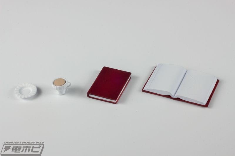 さらに、ミニチュアのティーカップ、ソーサー、開閉2種の本が付属。並べるだけでお嬢様らしさを演出できます。