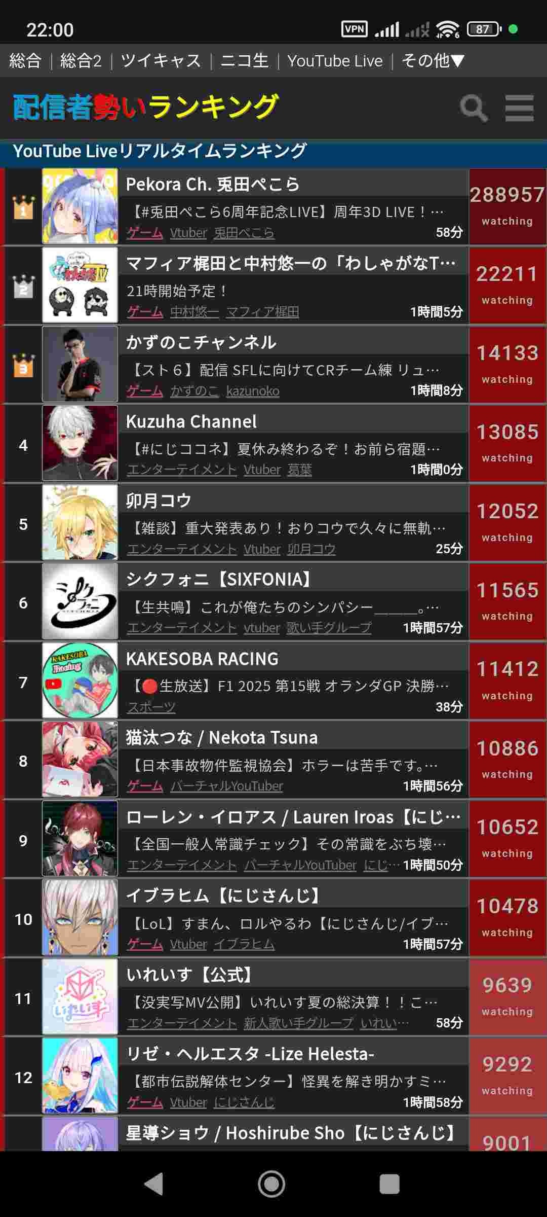 2位以下見てて思うけど配信見てる時間が全体的に下がってない?