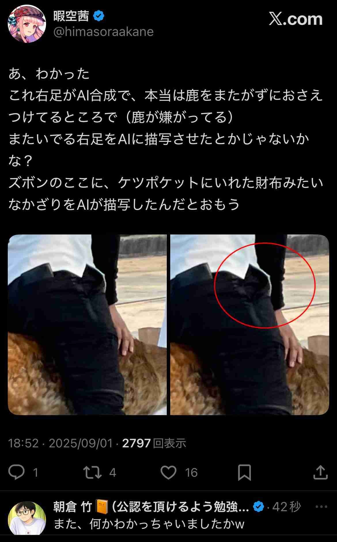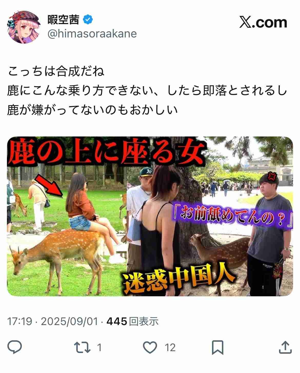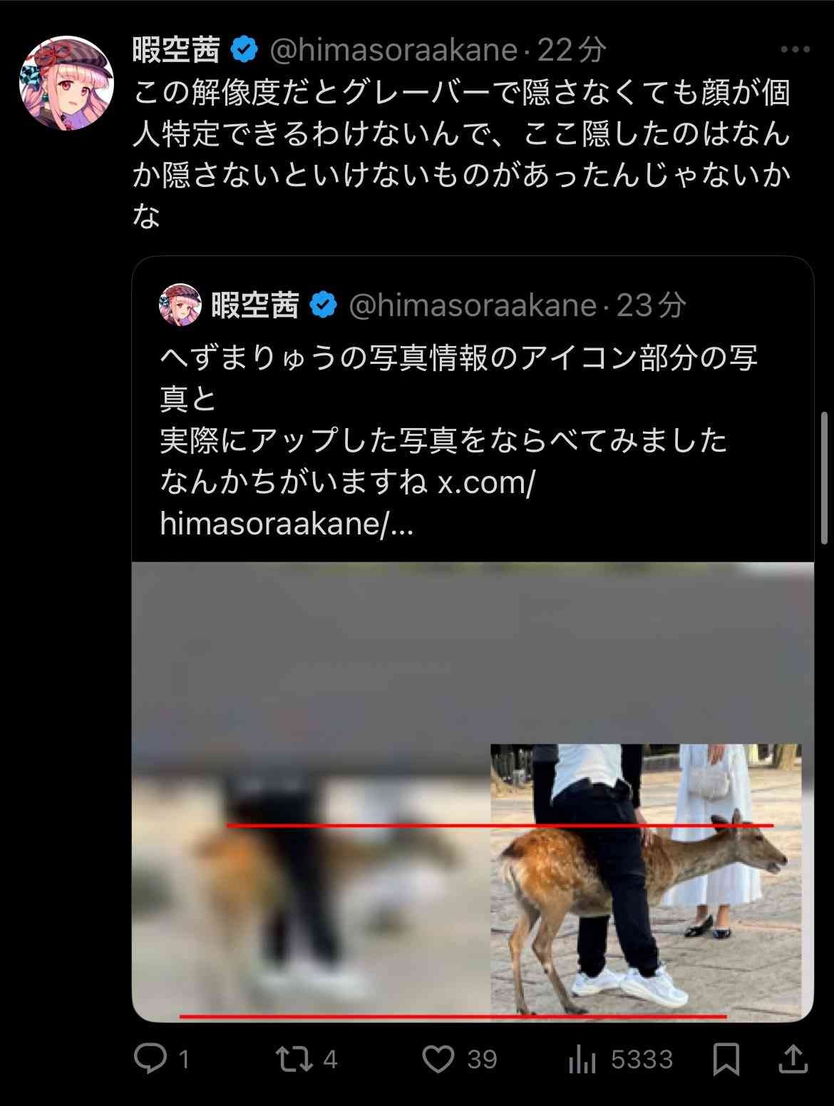 暇空にはへずまりゅうが鹿を持ち出す意図はなにか?を追求して欲しいところ