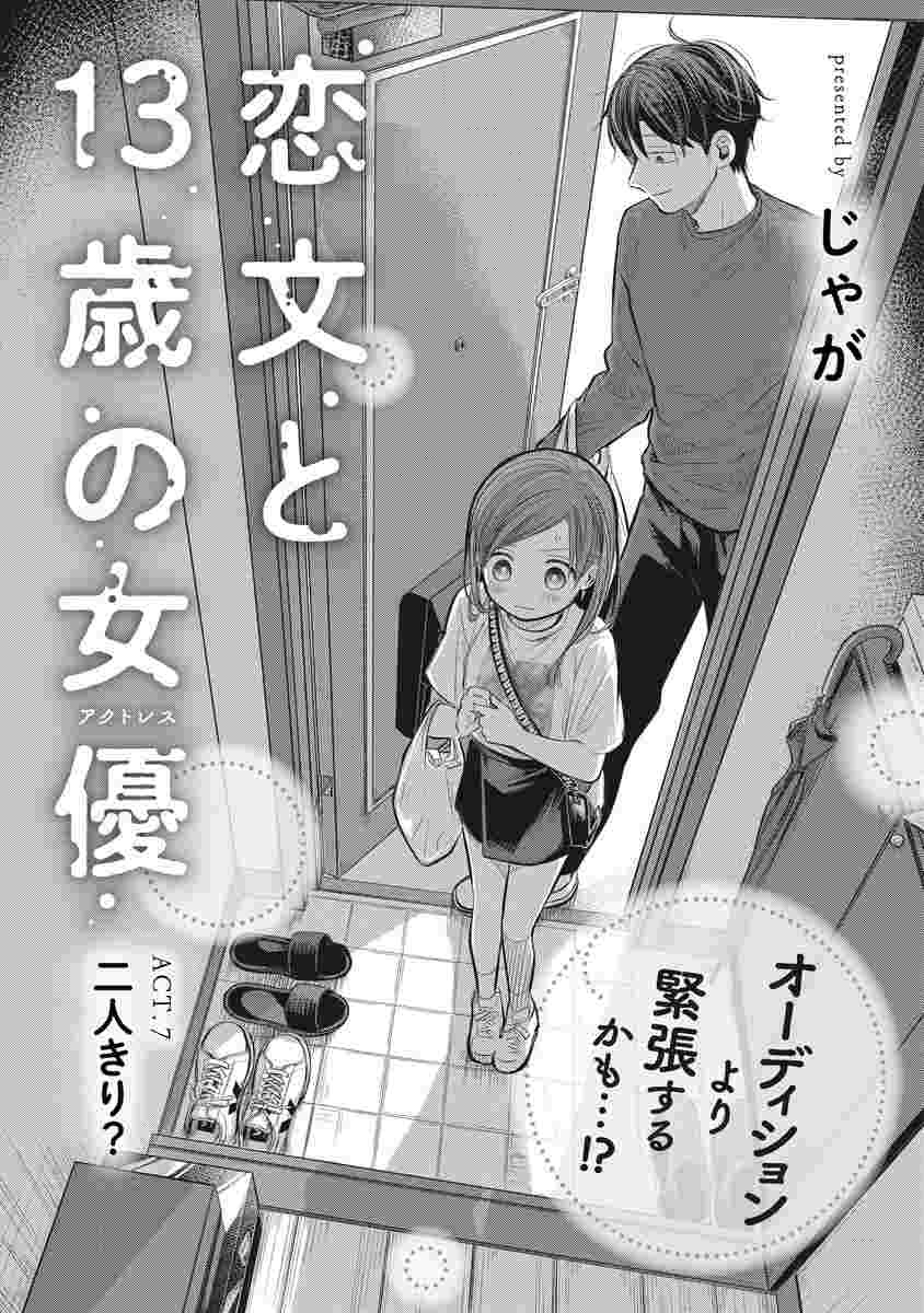 『恋文と13歳の女優』は、コミックナタリーによると『芸能事務所で経理として働いていた男性・一色文が営業への部署異動を言い渡され、13歳の役者・羽賀文乃のマネージャーを任されたことから始まる物語。2人きりの車内でボディタッチをしてきたり、こっそり私信の手紙を渡してきたり、文乃は妙に一式のことを気に入って近づいてくる。それが演技でからかっているだけなのか、本音なのか、一式は戸惑いながらもマネージャーの仕事に励む』というお話。
