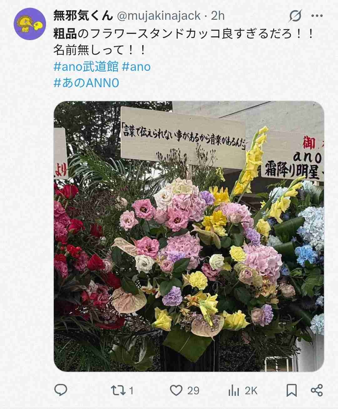 【画像】粗品があのちゃんの武道館ライブに送った花がカッコ良すぎるwww