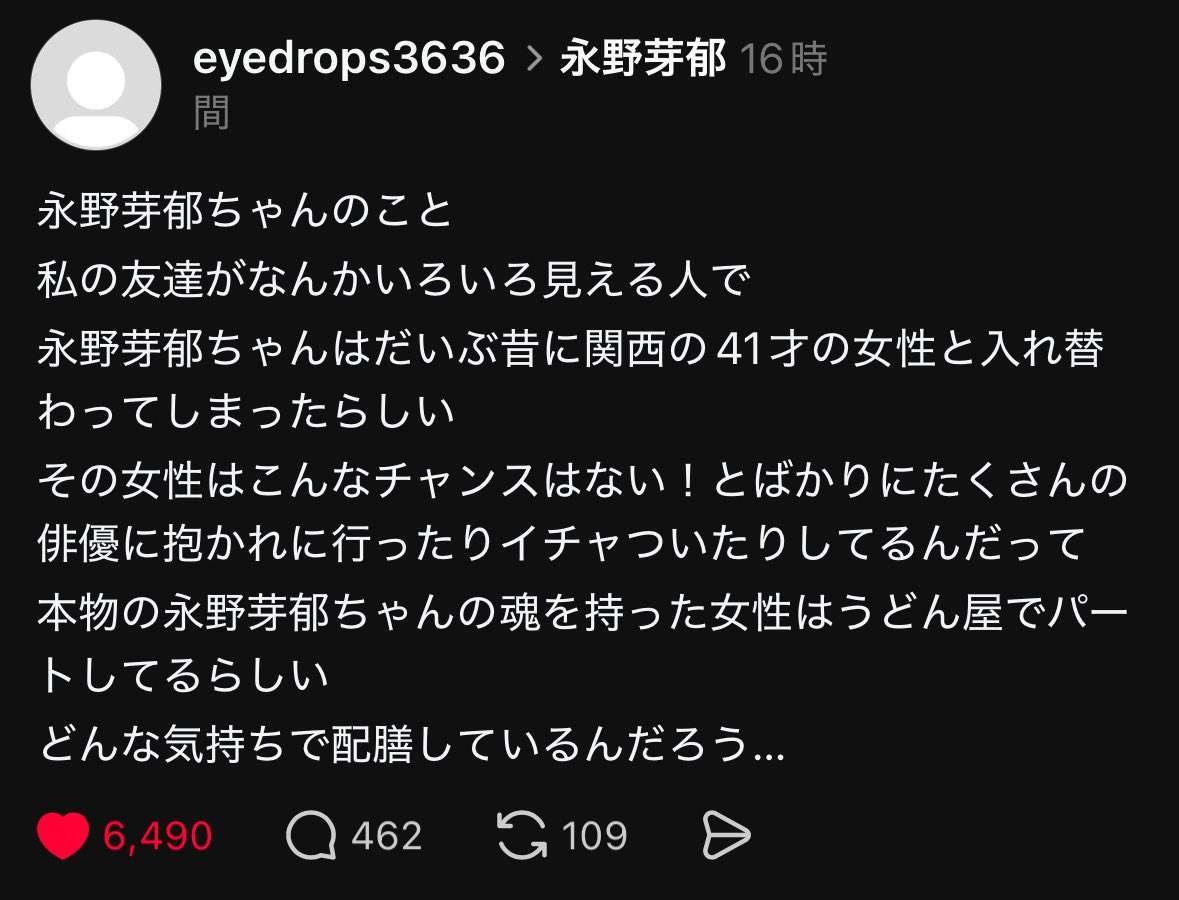 永野芽郁にあの甘えた目で見つめられて勃起しても中身がうどん屋のおばちゃんやったらほんまに辛いと思う