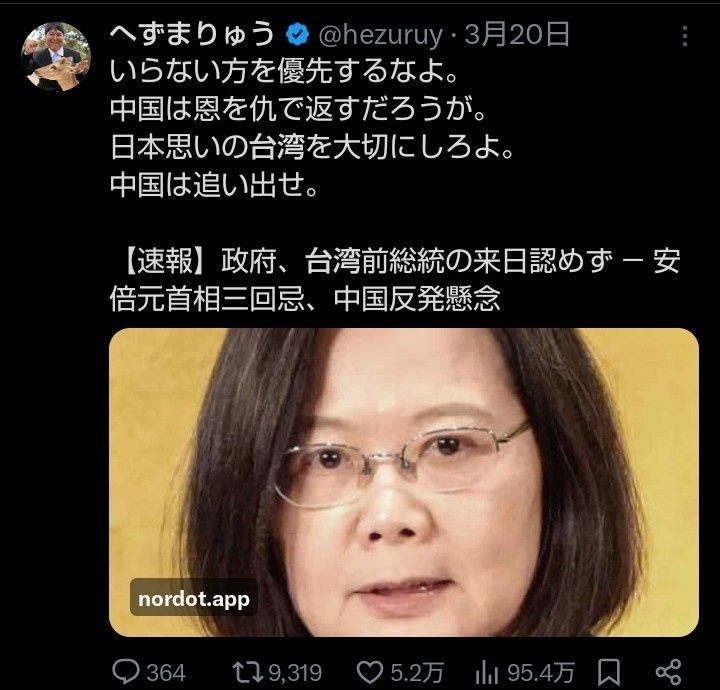 蓮舫の件といい今回の件といい、へずまってもしかして親中派か?