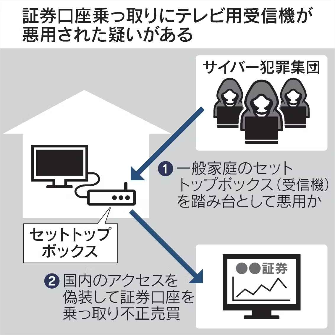警視庁や警察庁サイバー特別捜査部は他人のID・パスワードの無断使用を禁じた不正アクセス禁止法違反容疑などで捜査している。乗っ取った口座での不正売買は株価操作が狙いとみられ、証券取引等監視委員会も情報収集を進めている。