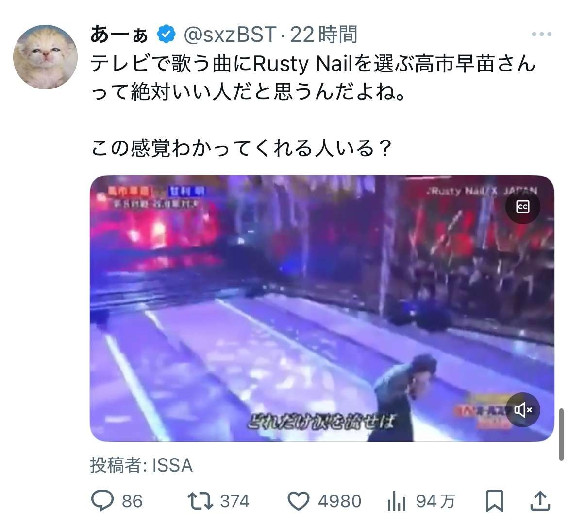 テレビでRustyNail熱唱とか、また次の選挙に向けて必死なんだろうなって思っちゃうよね
