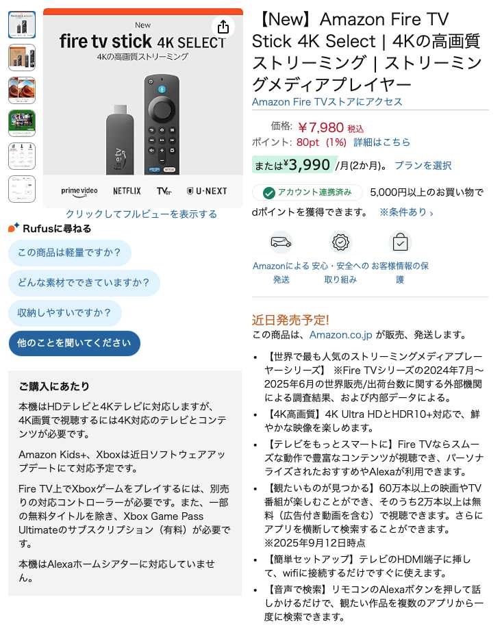 Fire TV Stick 4Kは9,980円だからな2千円安い