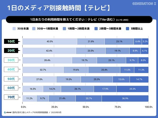 オトナルは、「国内Z世代 音とメディアの利用実態調査」を実施した。メディア利用実態についてZ世代と他年代を比較・分析するため、15歳から79歳の男女10,000人を対象に調査している。