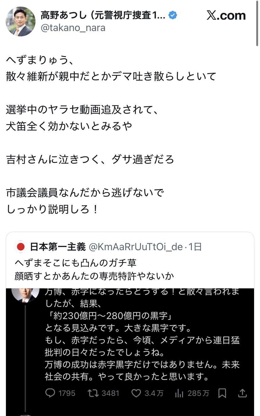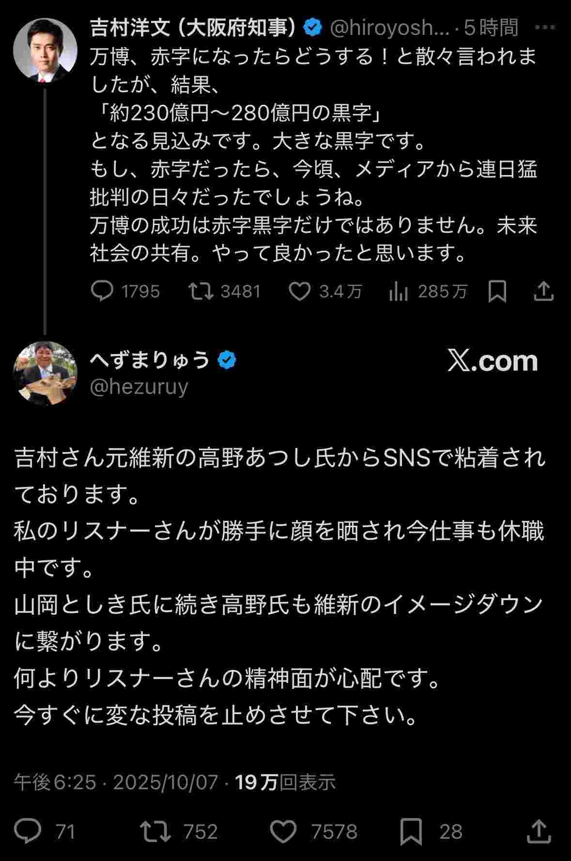 へずまりゅうが吉村はんに泣きつくとかもう何がしたいのかわからんくて草生えるわな