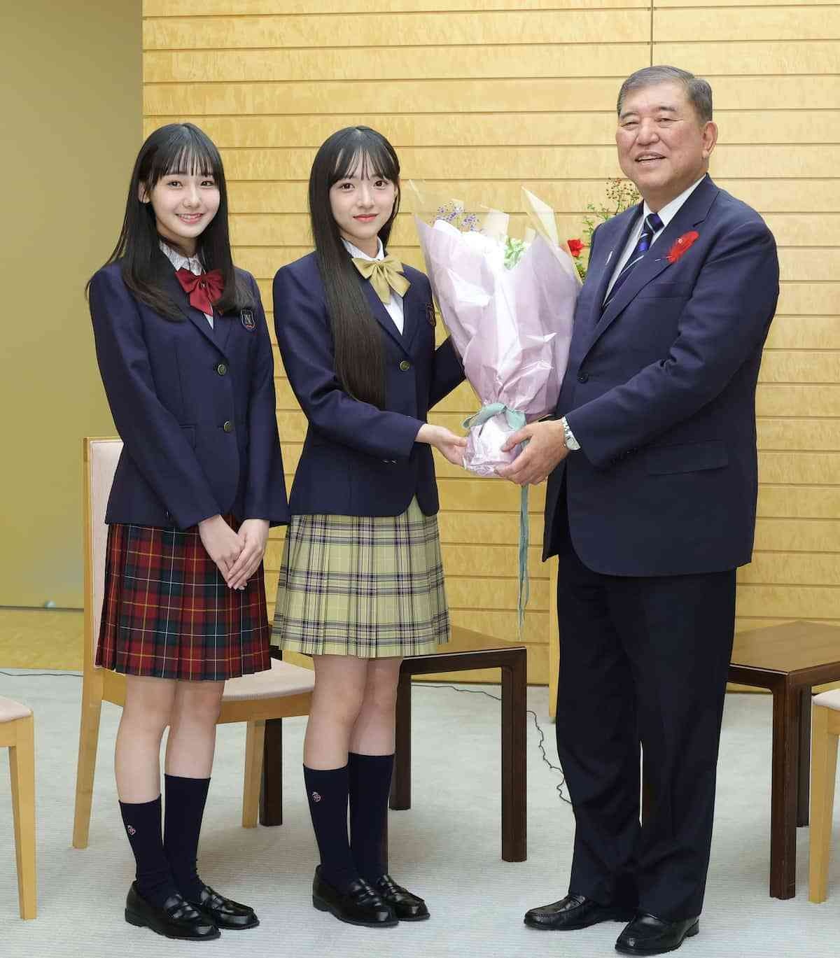 https://www.sankei.com/article/20251014-GNZAUEHK5BIJLP5L3V4VW3ZAPQ/石破茂首相を表敬する月刊誌nicolaアイドルユニット、リコリリの(左から)崎浜梨瑚さん、中瀬梨里さん=14日午後、首相官邸(春名中撮影)