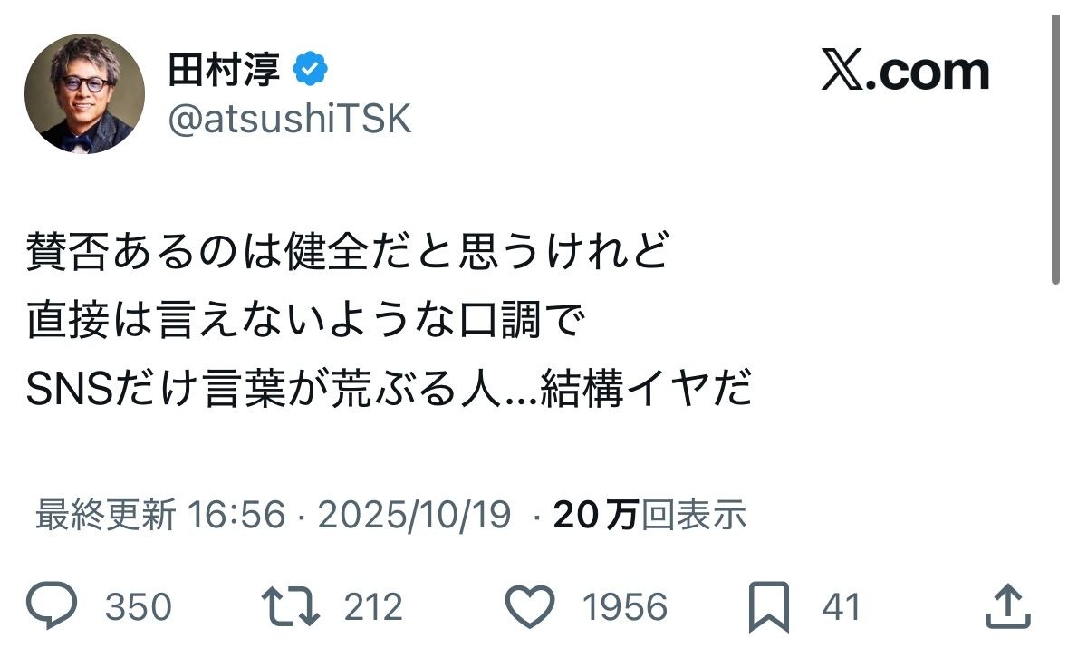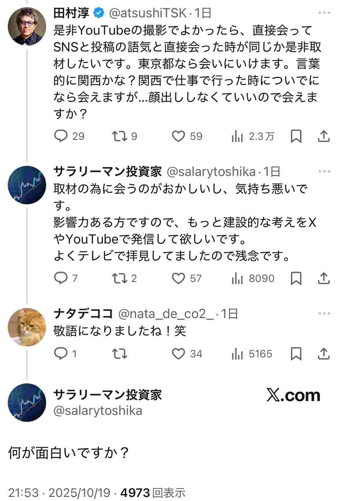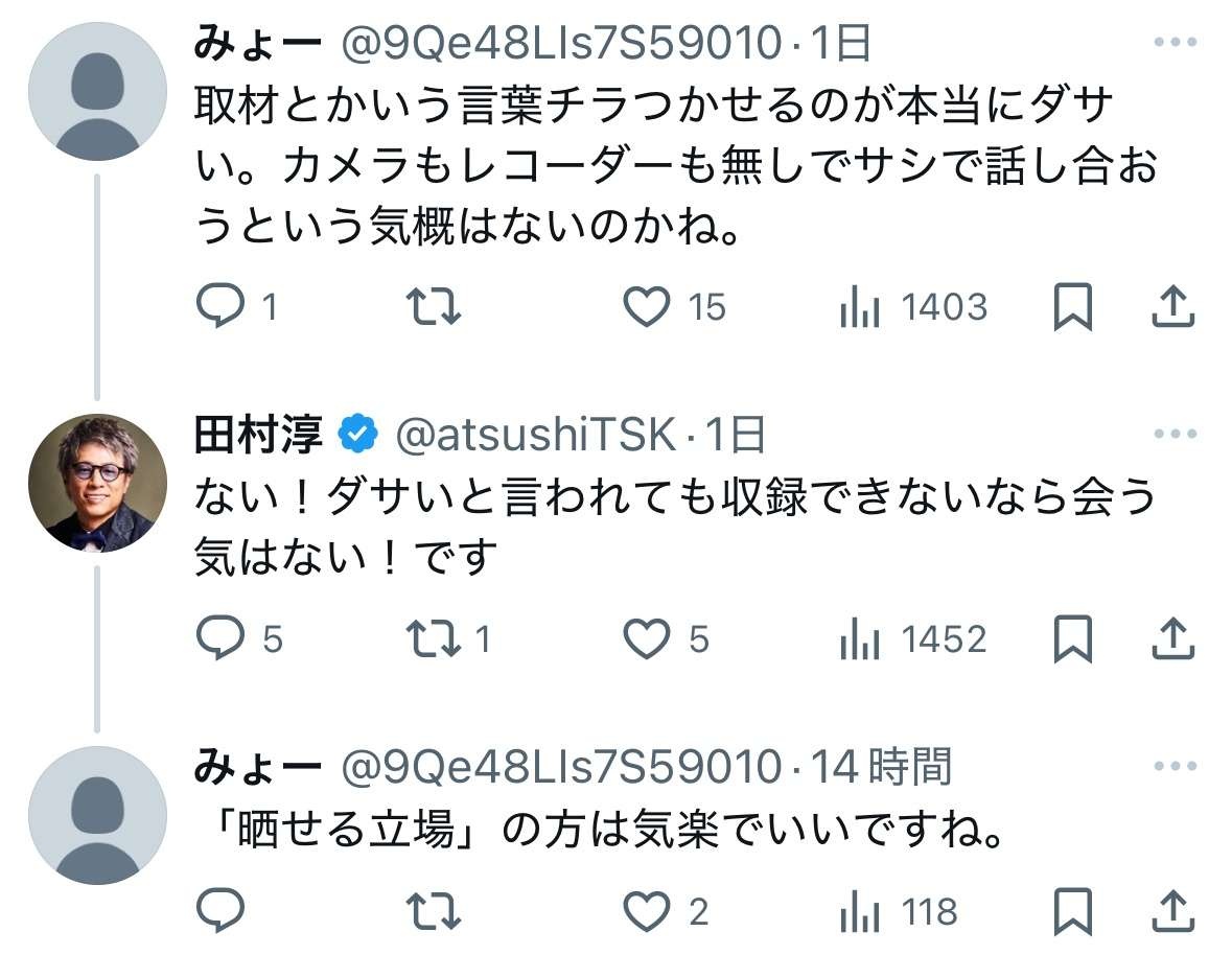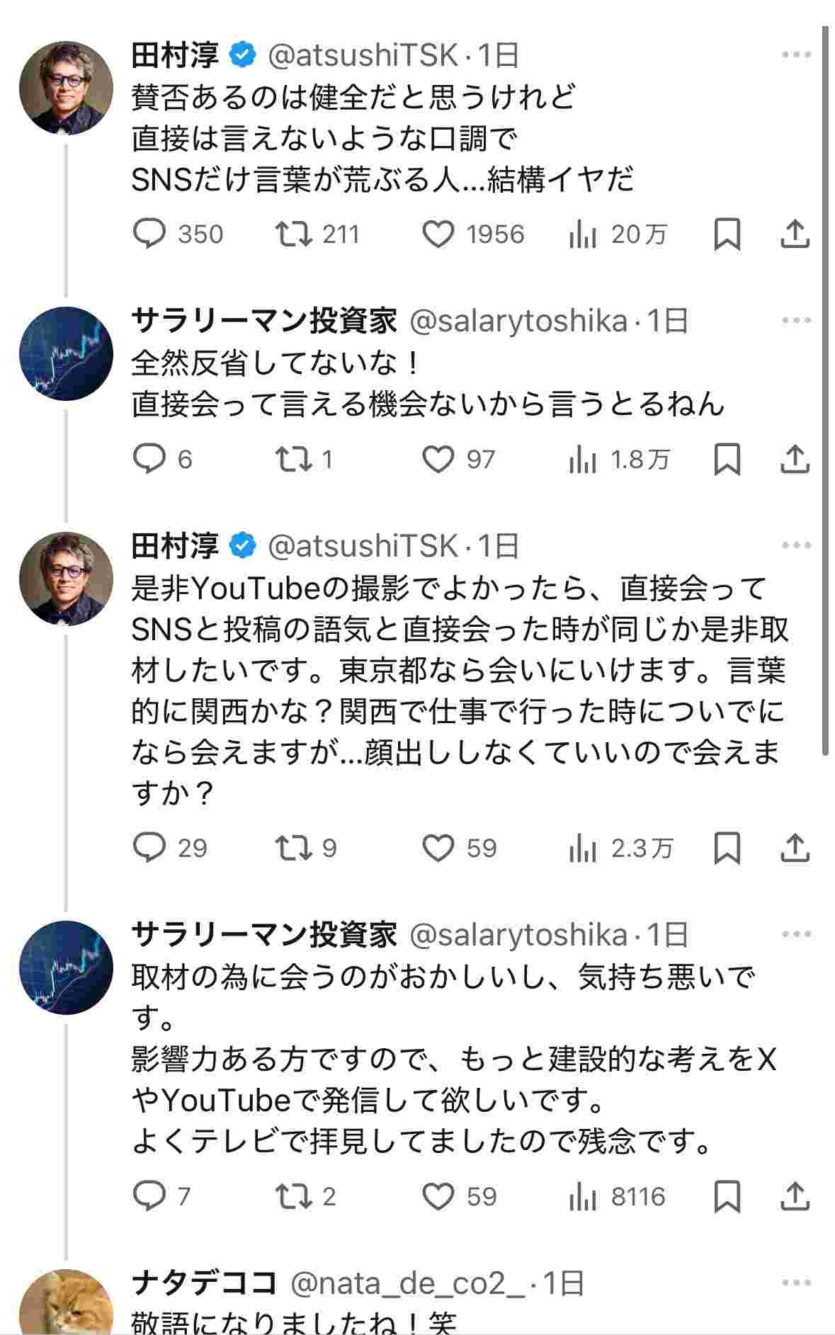 逆に田村も自分を批判してるインフルエンサーの巣に乗り込んで文句言う気概はないだろうし