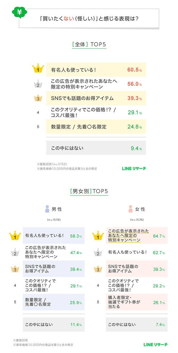買いたくない(怪しい)と感じる表現TOP5/男女別