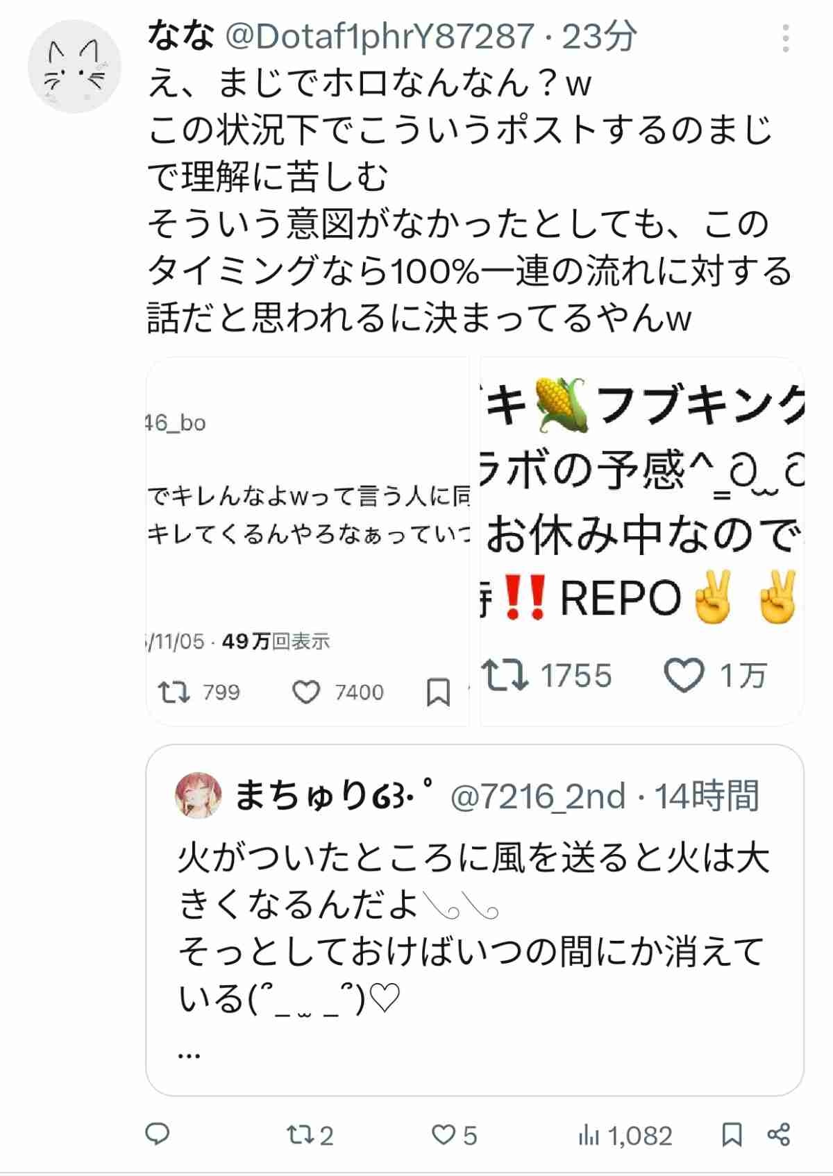 変に含みをもたせたどっちにも解釈できる言い方したせいでファン目線からもアンチ目線からも噛みつかれてて草