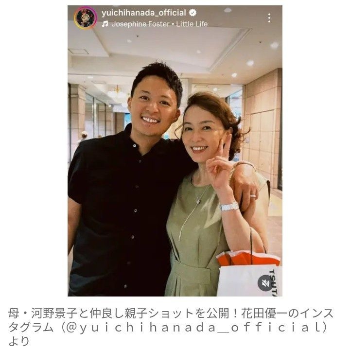 女子アナと熱愛の花田優一 母・河野景子と親子ショット!「61歳も笑顔で」若々しい姿に驚き「お美しい」