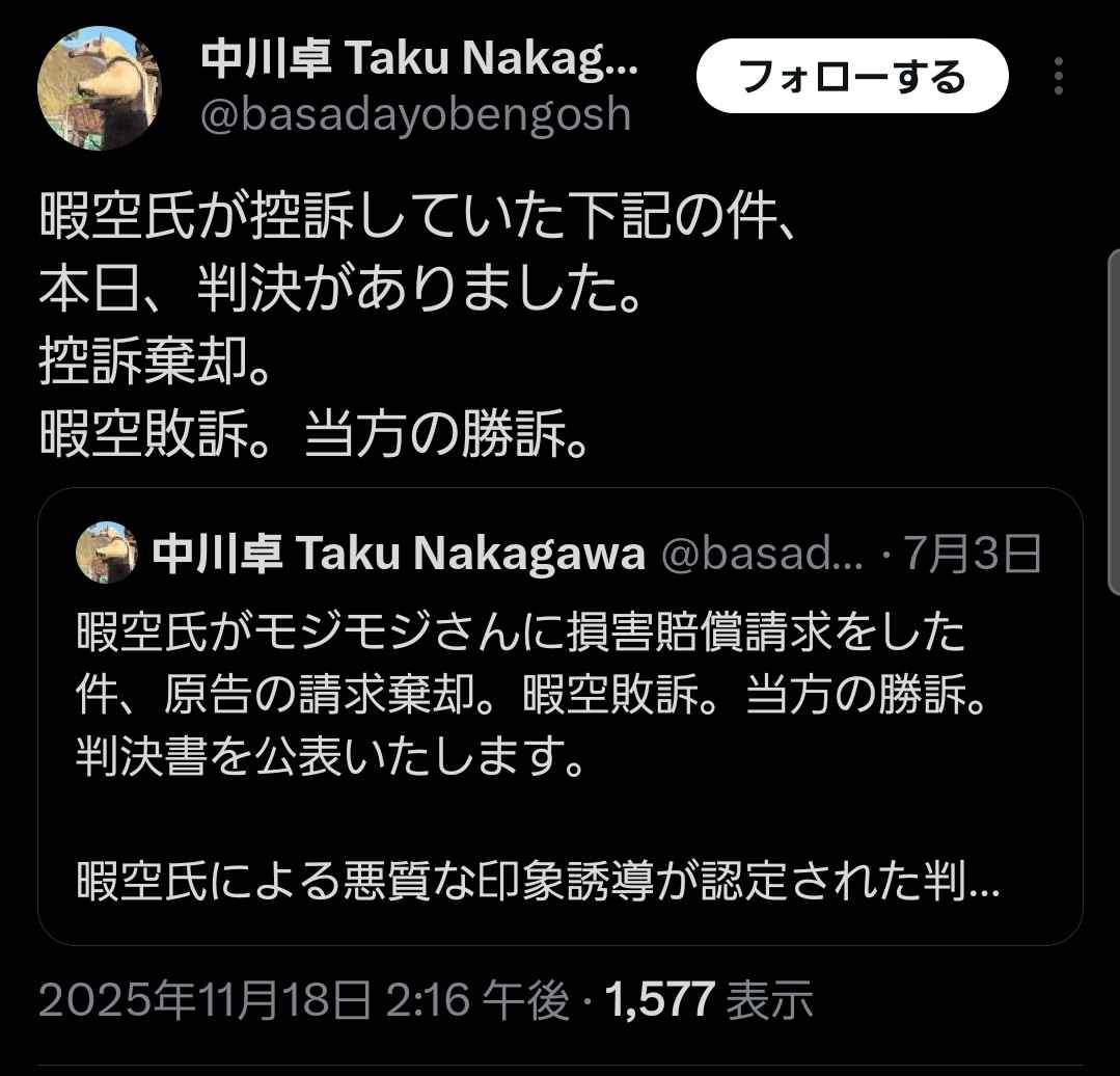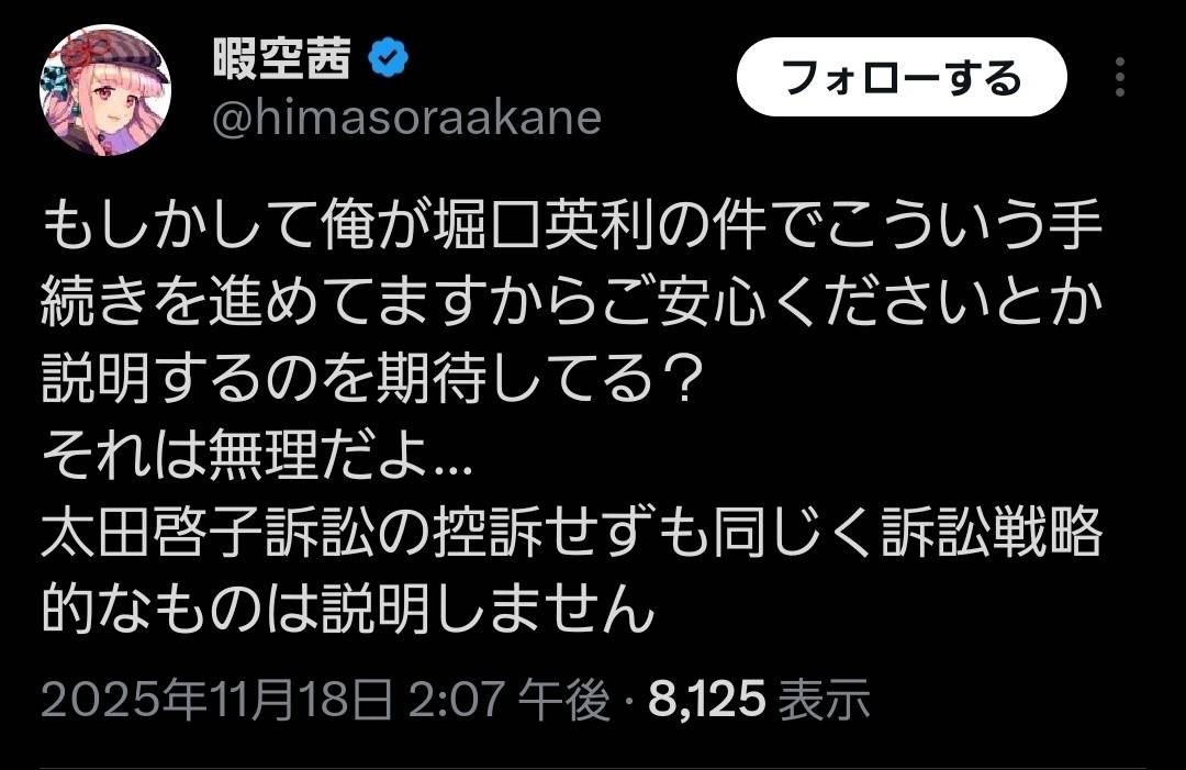 【日刊】暇空茜、また敗訴🥸