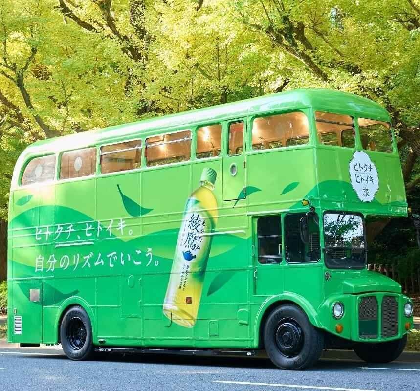 コカ・コーラ「綾鷹」で儒烏風亭らでんさん案内人に迎えてバスツアー運行開始 和モダンの車内で和菓子を提供 その目的は?