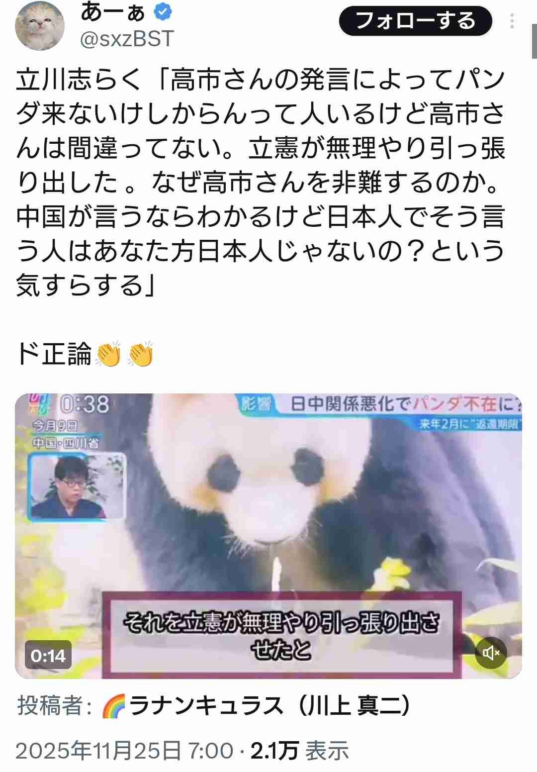 高市になるまえにパンダ返還カードを切ったのは中国側だし、そのおかげで別に要らんやろって声が強まったのはあるな