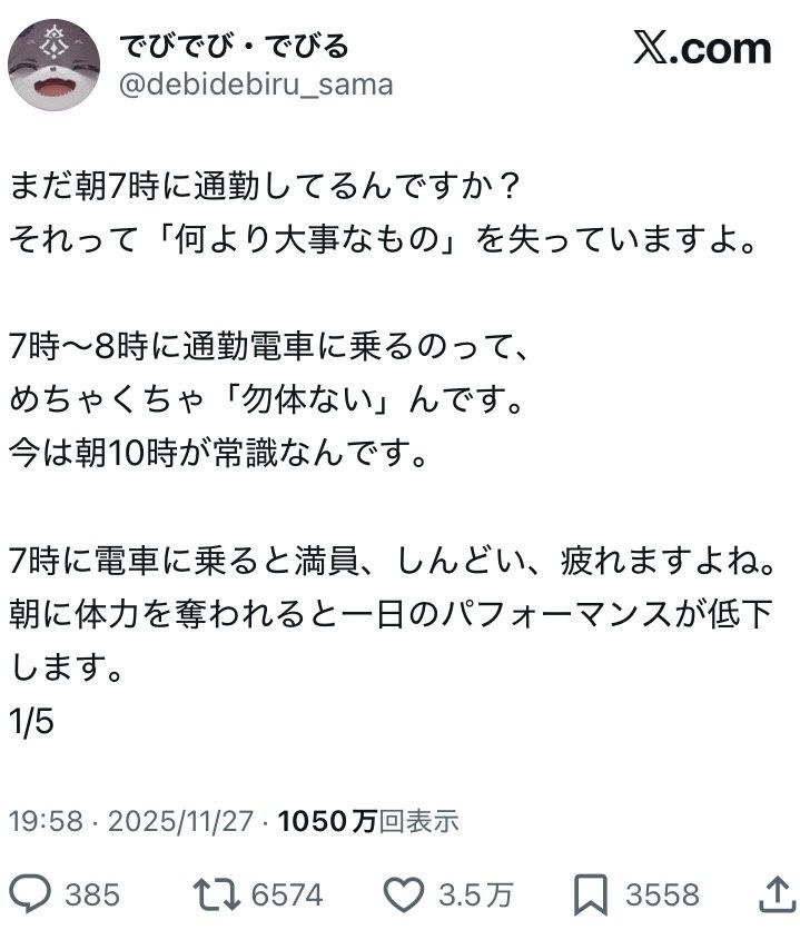 朝10時が常識なら何で7時に電車に乗ると満員なんですかねぇ
