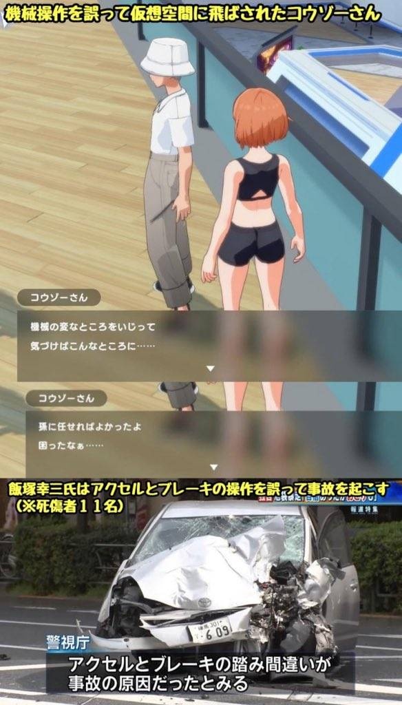 多くのSNSユーザーは、このキャラが、2019年に東京・池袋で起きたプリウスの暴走事故で、当時3歳の女の子と母親の命を奪った飯塚幸三氏を強く想起させると指摘。名前や雰囲気、発言内容も飯塚氏をイメージして制作されたと考えるのは自然なことでしょう。なお、飯塚氏は2021年に禁錮5年の実刑を受けて収監中の2024年、老衰のため死亡しています。