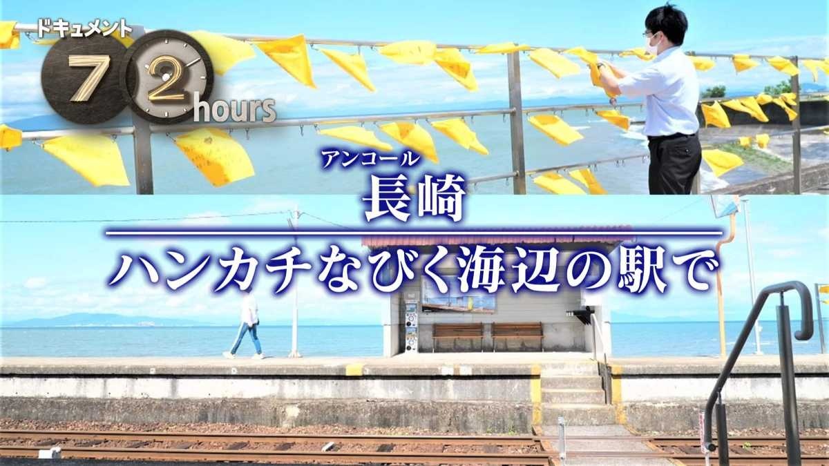 初回放送日NHK総合テレビジョン2022年7月22日(金)午後10:45海風になびく、たくさんの黄色いハンカチ。舞台は長崎・島原半島を走るローカル線の小さな駅。ホームの裏手には有明海。無人駅だが絶えず人が訪れ、ハンカチに願いを書き、ホームに取り付けていく。ペアルックでのデート中に、立ち寄ったカップル。この鉄道を撮るために東京から車で来た写真家。地元の人も、この駅のある暮らしが長く続くことを願っている。海辺の駅で3日間、行き交う人たちの声に耳を傾ける。(2022年放送)