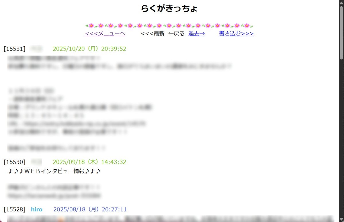 驚くべきことは「teacup.」風の掲示板が自前で設置されており、現在も稼働していること。かなりメンテナンスが大変だと思われますが、ご自身で管理されているのでしょうか。全体的に古き良きデザインを保ちながら、しっかりメンテナンスされているのが好印象です(一問一答のページだけが文字化けしていましたが)。