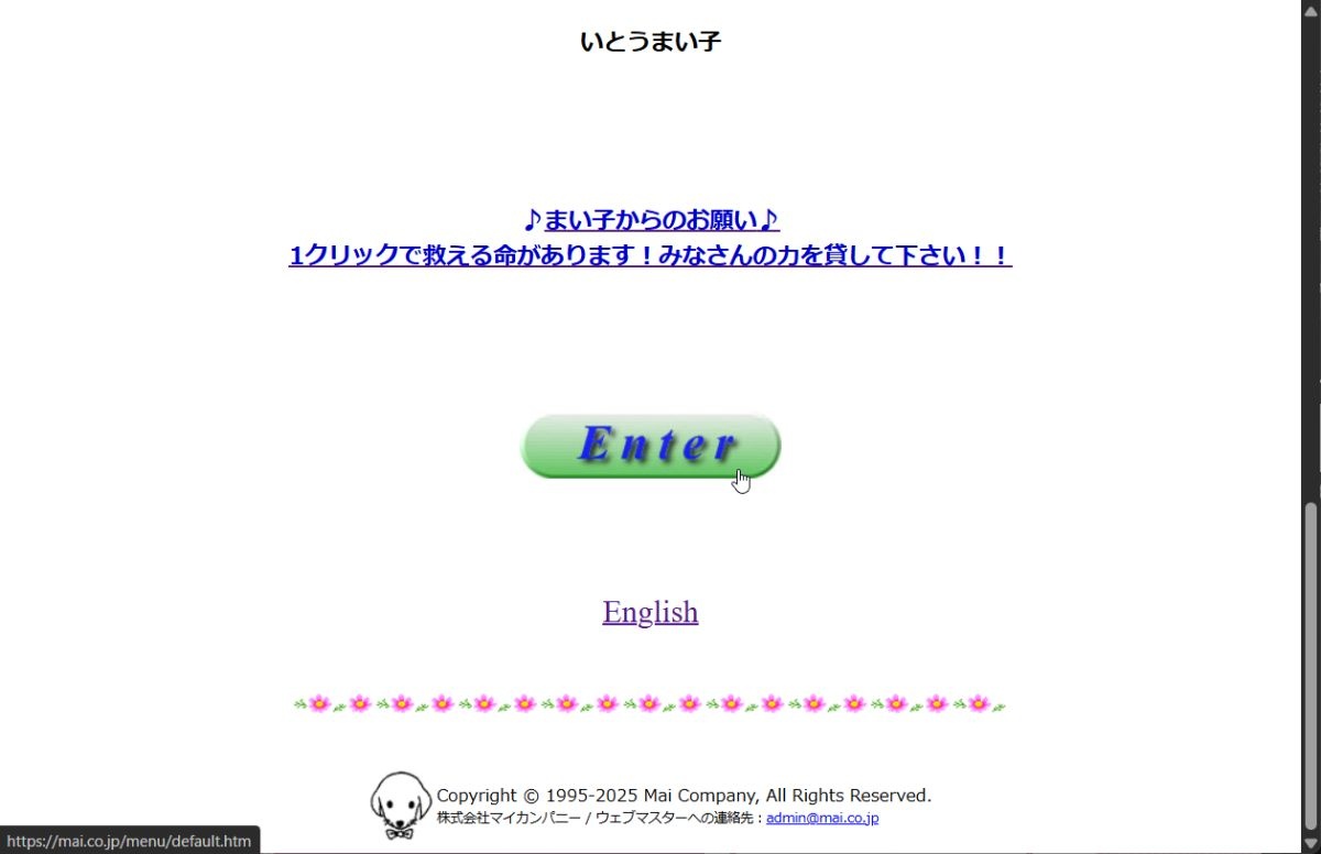 ホームページにアクセスすると、2025年4月~2026年3月のカレンダーの画像とともに、何ともノスタルジーを感じさせる[Enter]ボタンがお出迎え。伝統的デザインを守りつつ、現在も更新されていることがわかります。インデックスページに進めばそこはもう2000年代。花をあしらった罫線が手作りの良さを感じさせてくれます。