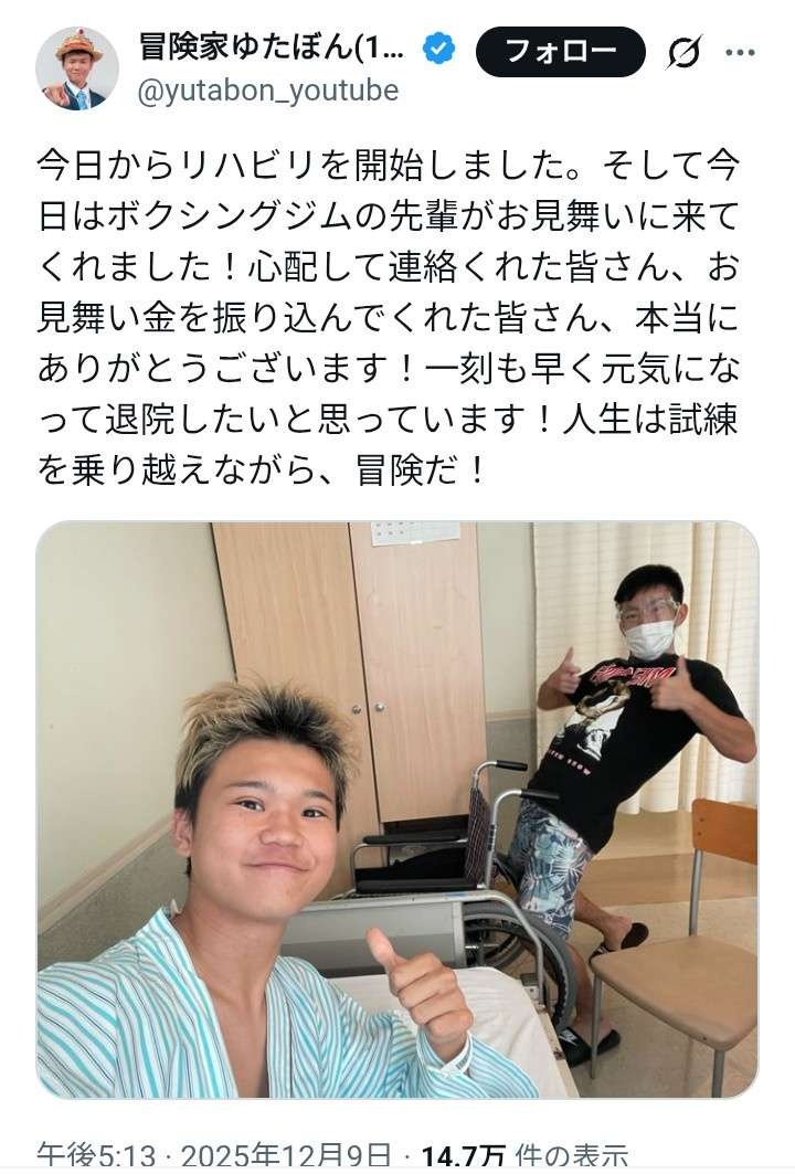 元不登校YouTuberで現在は「冒険家」の肩書で活動する高校生・ゆたぼんさん(16)