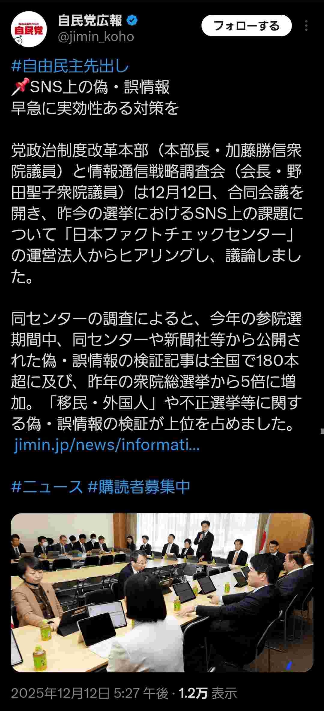 SNSのデマ対策は自民党の党利党略によるものではないのに、反自民反高市の党利党略でいちいち足を引っ張る迷惑系ケンモメン🥴