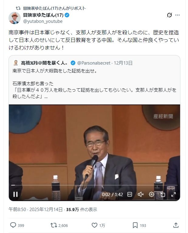 【悲報】ゆたぼん「南京事件は日本軍じゃなく、支那人が支那人がを殺したのに、歴史を捏造して日本人のせいにして反日教育をする中国」 [733893279]