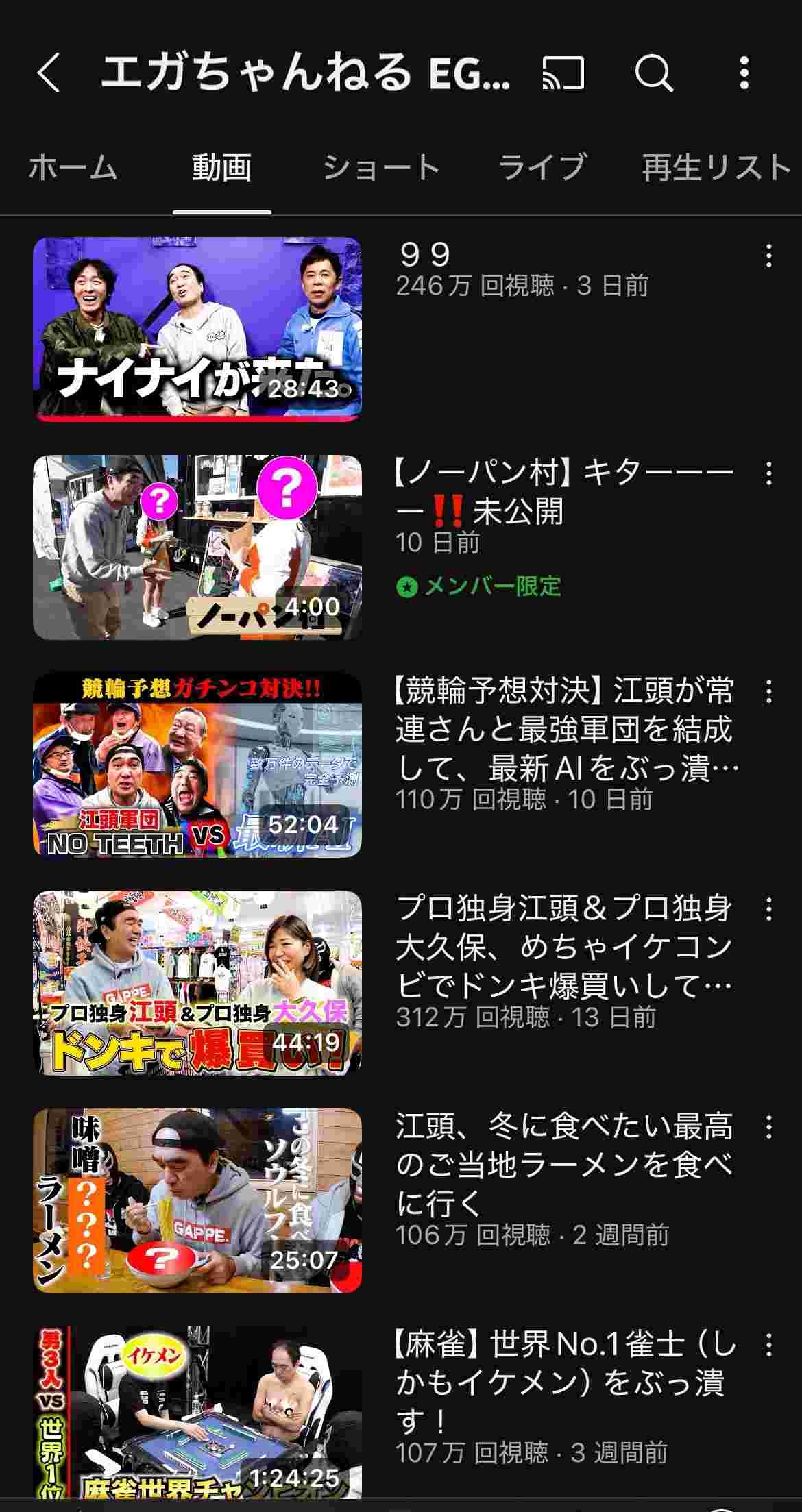エガちゃんねるってバランス良いのよな。ロケと部屋たまに芸能人のゲストとかプロ呼んで麻雀したり。良い意味で色々あるわ
