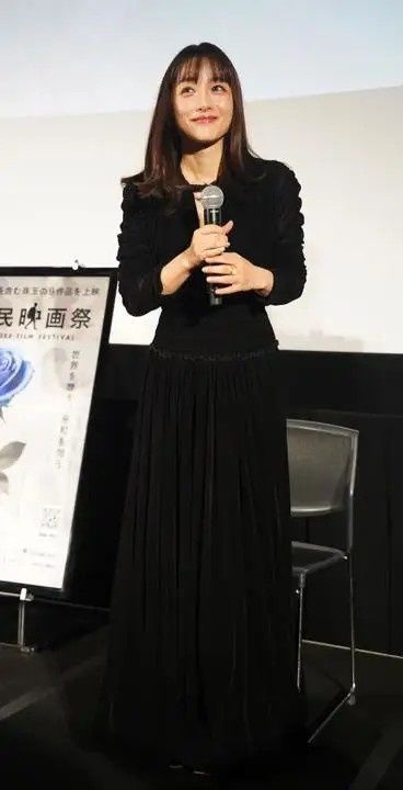 石原さとみ:V字カットの黒ワンピで美肌を披露 フリルやシャーリングで大人可愛く