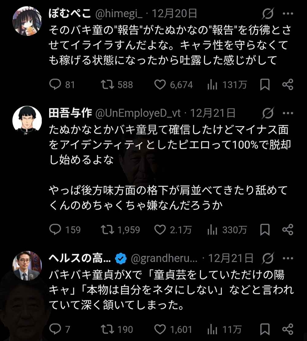 あれ見て「本当に童貞だ!俺らの仲間だ!」って思ってる人が一定数いるのが怖い