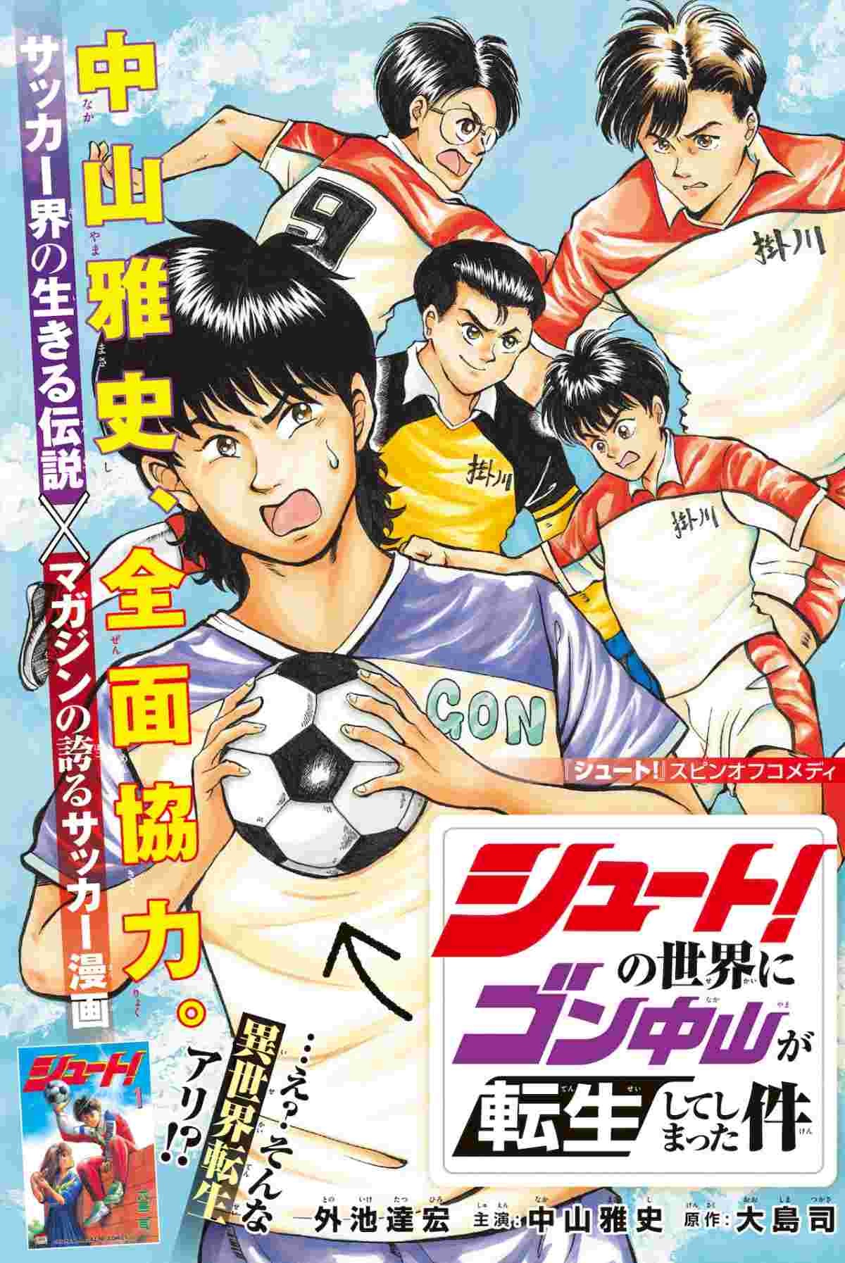 プロサッカー選手・中山雅史の全面協力のもと描かれる「シュート!の世界にゴン中山が転生してしまった件」は、「シュート!」の世界に転生してしまった中山を描くスピンオフコメディ。トラックに轢かれた中山は、湖東高校の生徒として目を覚ます。1カ月後、インターハイ予選で中山たちの前に現れたのは掛川高校で……。なお1話目は本日4月1日発売の週刊少年マガジン18号にも特別出張掲載された。