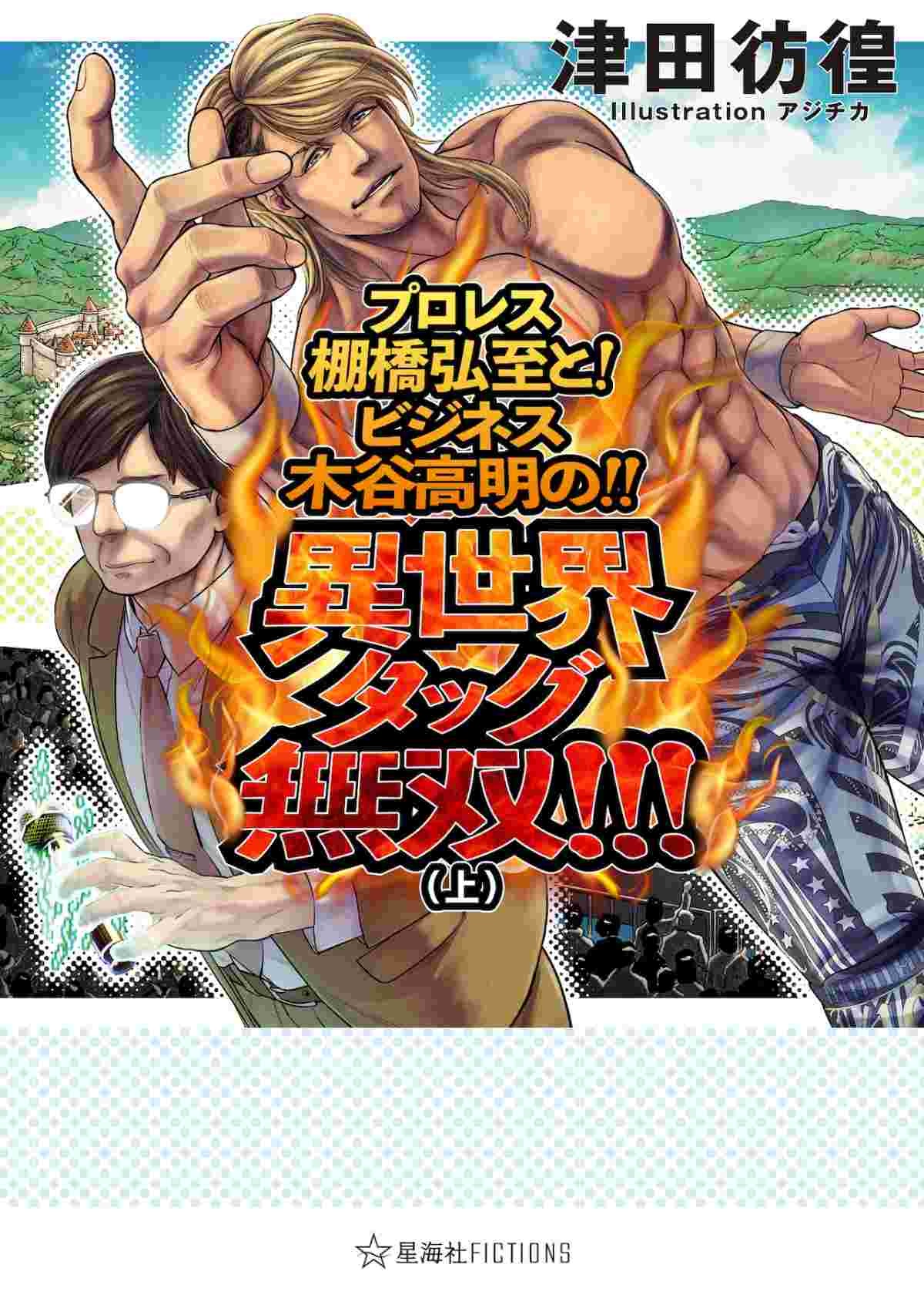 「プロレス棚橋弘至と! ビジネス木谷高明の!! 異世界タッグ無双!!!」の主人公は100年に1人の逸材と称されるプロレスラー・棚橋弘至と一代でブシロードグループを築き上げた経営者・木谷高明の2人。トラックにはねられそうになった子供を救うため事故に巻き込まれた棚橋と木谷は、目を覚ますと異世界に転生していて……。装画と挿絵はすべてアジチカによる描き下ろし。アジチカは同作で初めて装画と挿絵を担当した。津田と棚橋からはコメントも到着している。「プロレス棚橋弘至と! ビジネス木谷高明の!! 異世界タッグ無双!!!」上巻は7月26日に発売される。