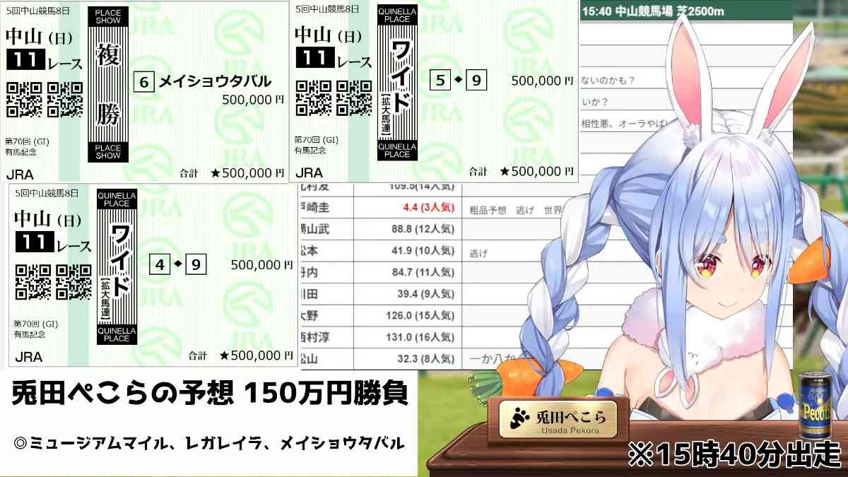 ぺこらと同じ賭け方で3000円勝ちやわ