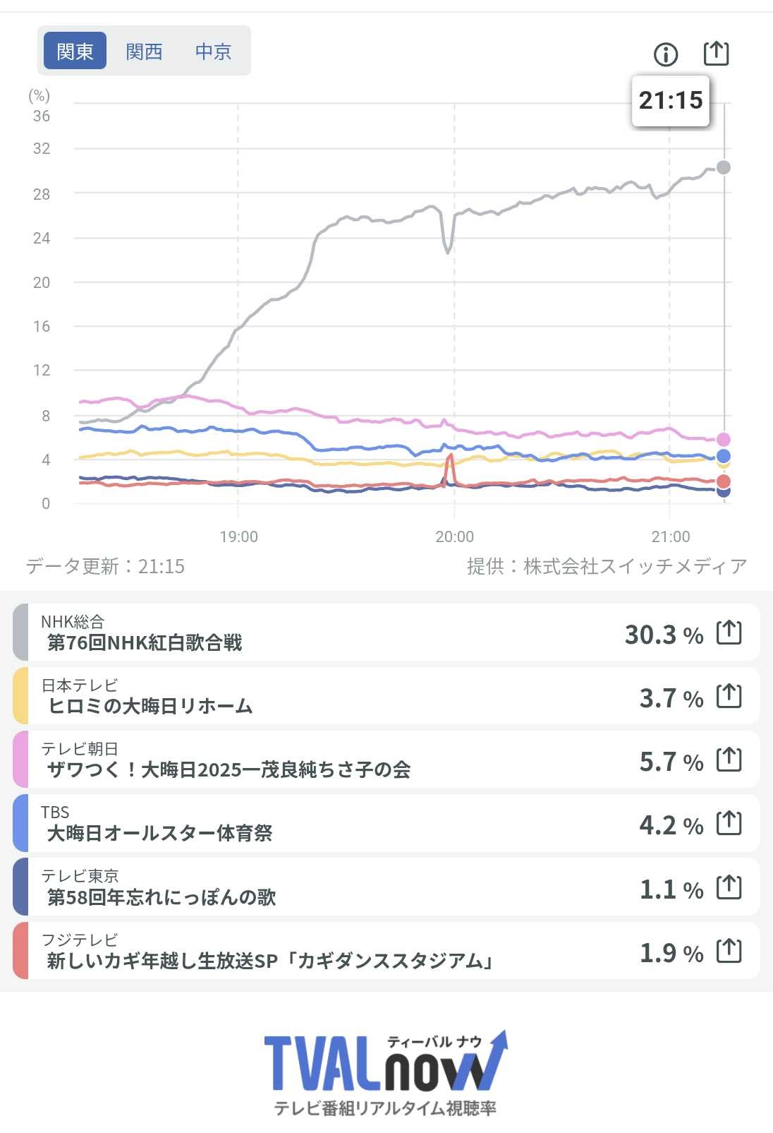というか紅白も30%しかなくてワロタ