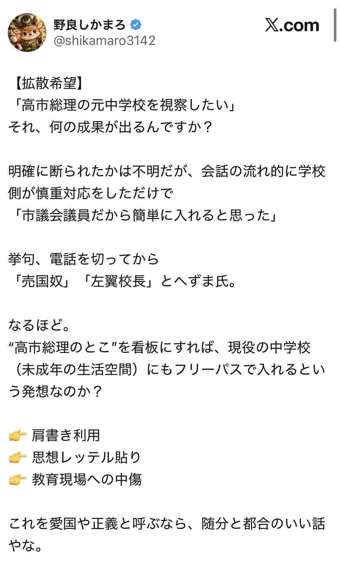 へずまさんが中学校に侵入するのを断るとはとんだ売国奴校長だな!😡