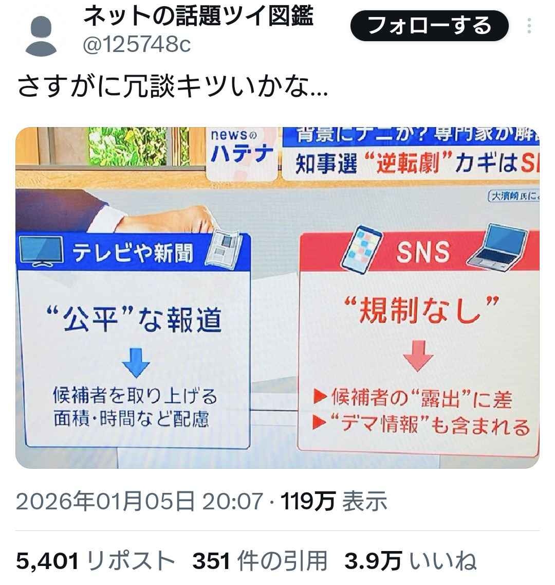 オールドメディアこそ規制なしで反日デマ捏造情報垂れ流してるよね?
