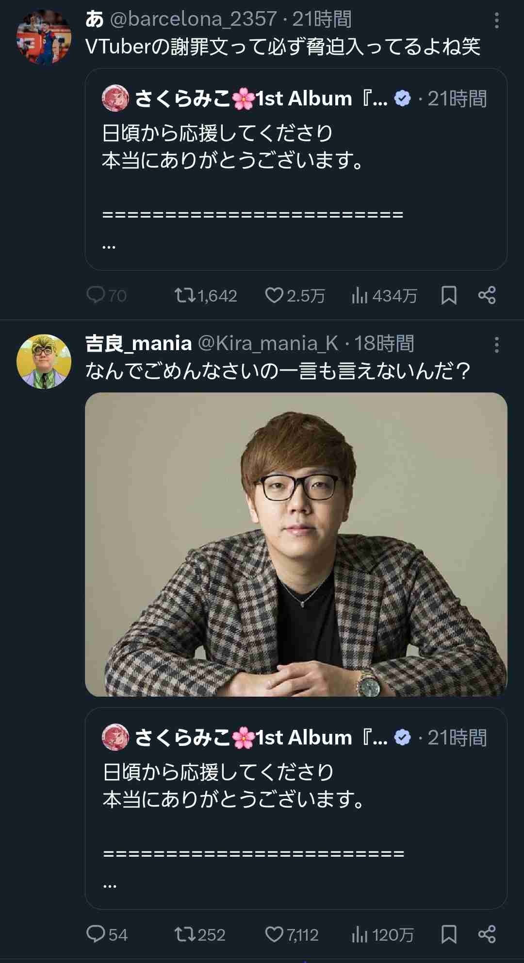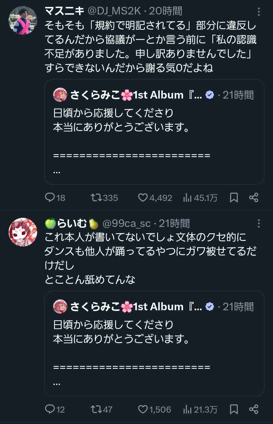 さくらみこちさんの謝罪ポスト、なぜか誹謗中傷が殺到する事態に…