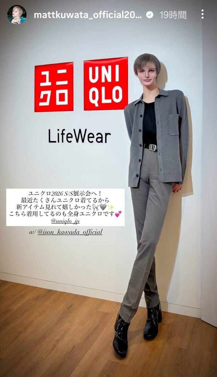 【別カット】Matt「20キロ減」顔ほっそり「別人すぎ」「めっちゃ細くなってる」6日までに自身のインスタグラムを更新し「ユニクロ2026 S/S展示会へ!最近たくさんユニクロ着てるから新アイテム見れて嬉(うれ)しかった」という。