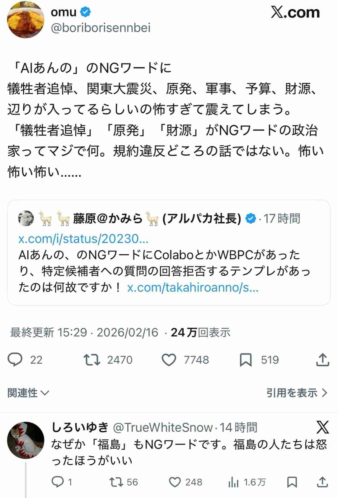 ネット情報でリアル前提無視して答えを生成することがあるからNG設定は当たり前だぞ
