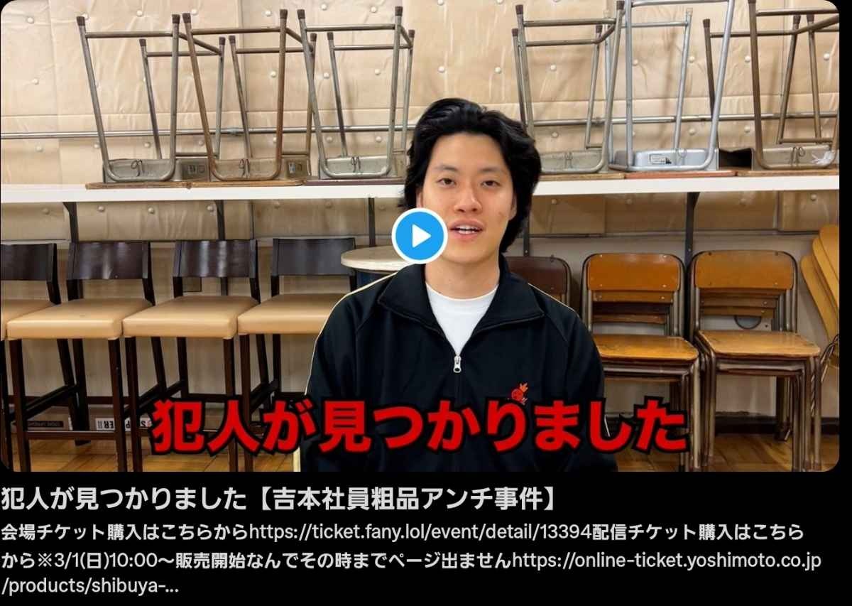 吉本社内に粗品アンチが居る大事件についてですが、犯人が見つかりました