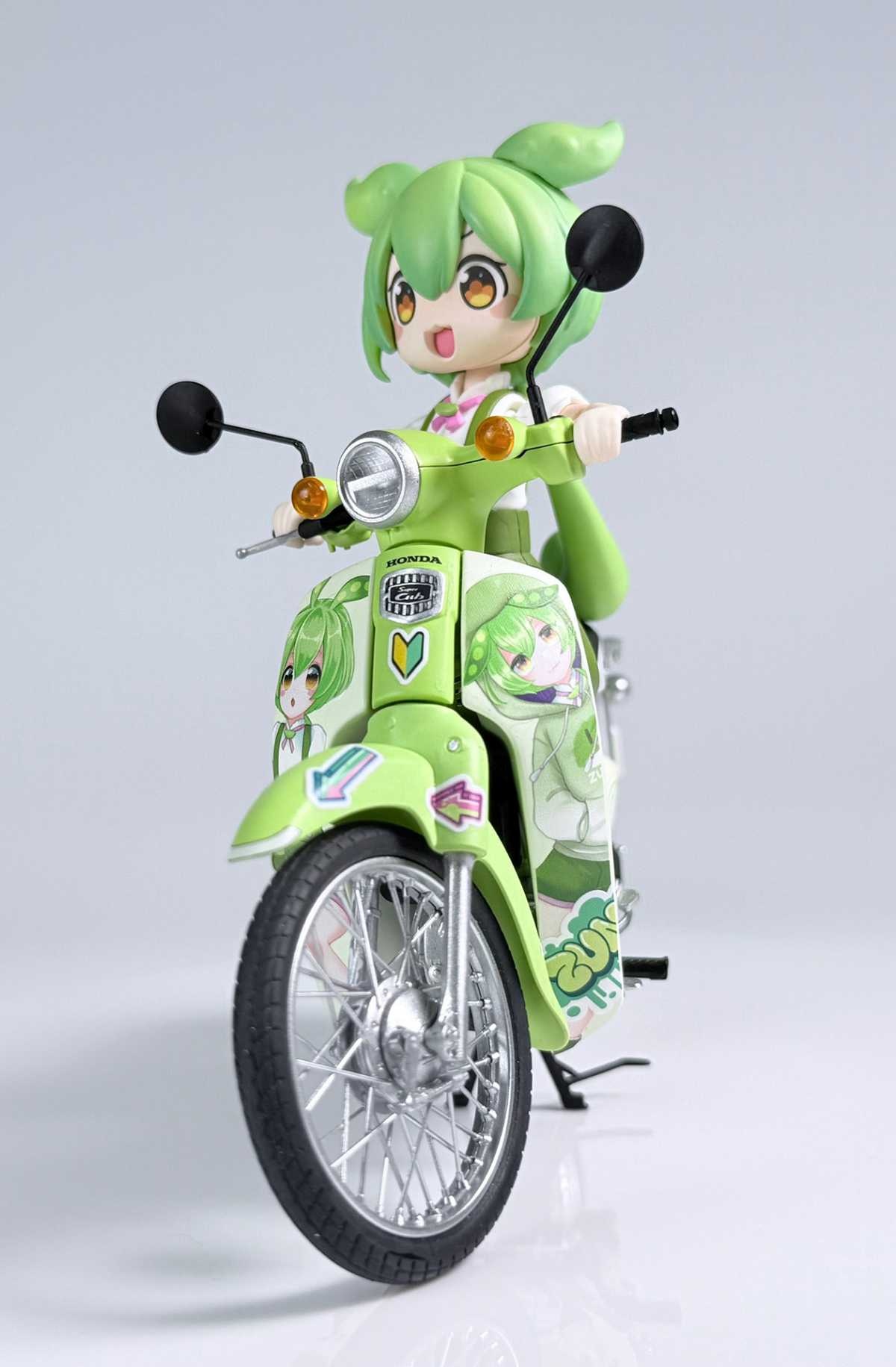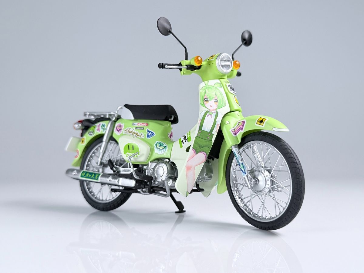 フジミ模型の1/12 NEXTシリーズの「スーパーカブ」の本格的な仕様に加えて、ずんだもんカラーで立体化されている。