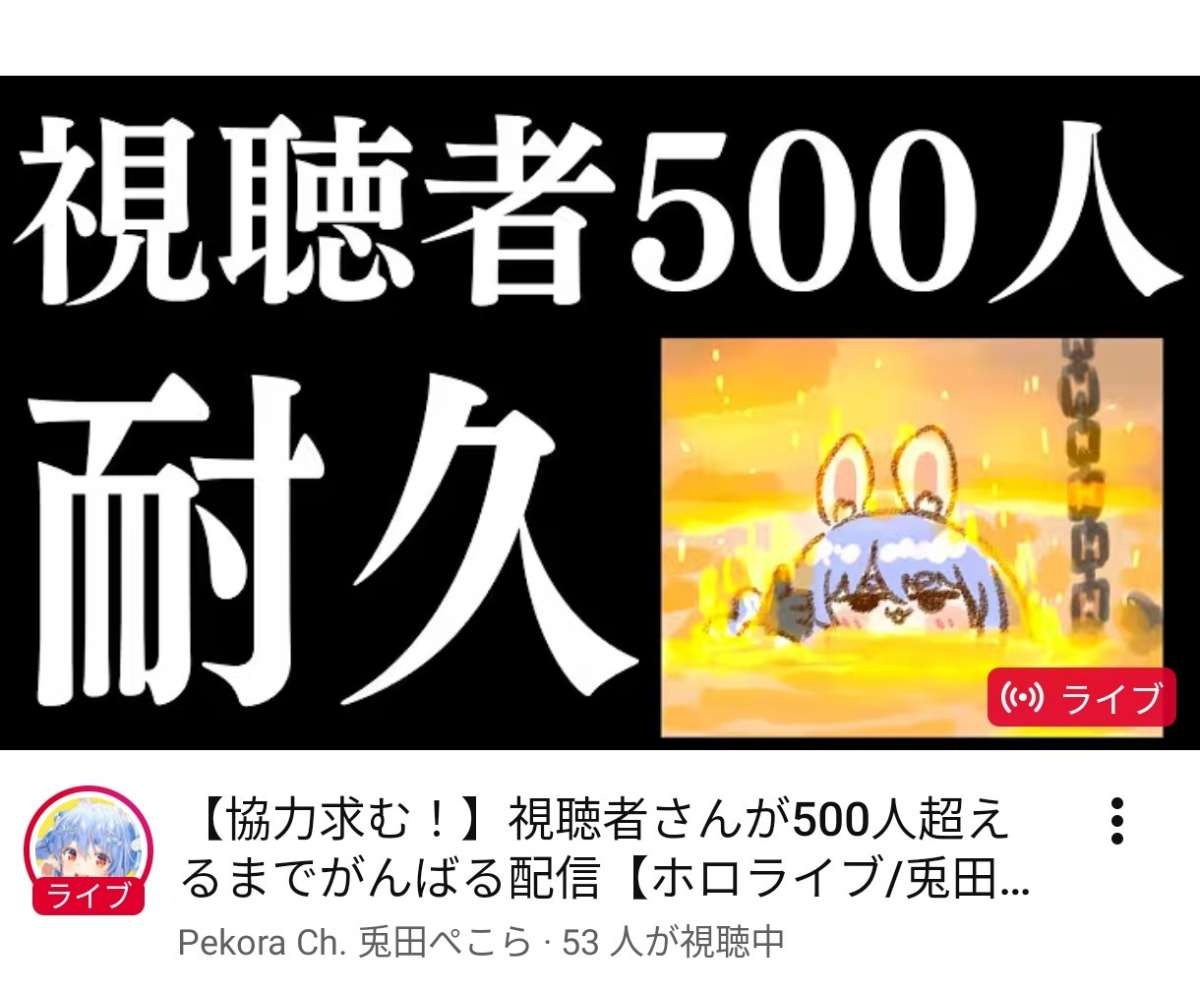 同接500人超えはいくらぺこーらでも無理だろ