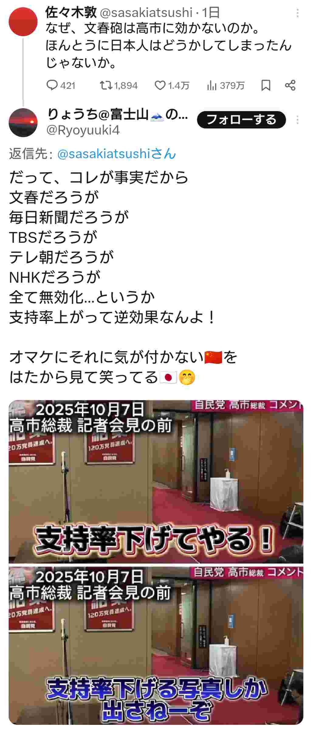 文春砲は単なる娯楽に過ぎず、権力者の本音は通じない。国民は薄々知っていても、現状維持を無意識に選んでいる。これは衰退ではなく、選択の放棄だ。高市氏への反応は、日本人の無関心と権威への盲従が露呈している。2026 年の今、その構造は崩れ始めている。
