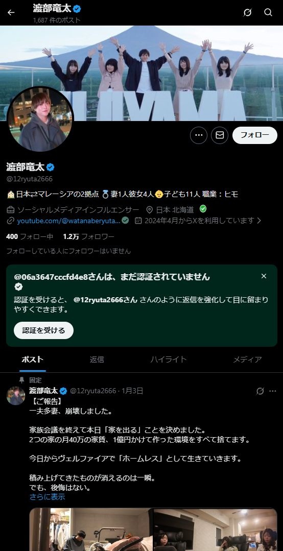 家族系YouTubeチャンネル「一夫多妻ちゃんねる」で知られる、YouTuberでインフルエンサーの渡部竜太氏が2026年4月11日、ハーゲンダッツ商品に「針」が入っていたとする旨をXで投稿し、驚きが広がっている。
