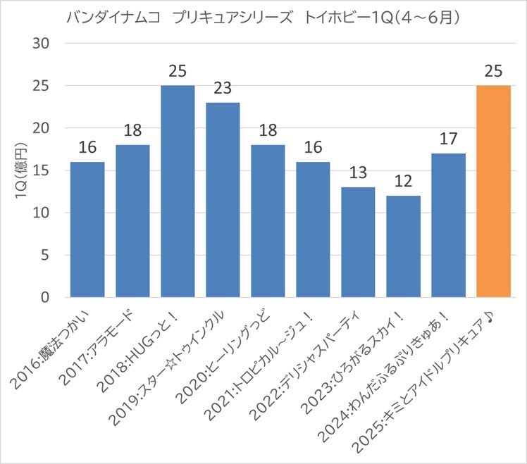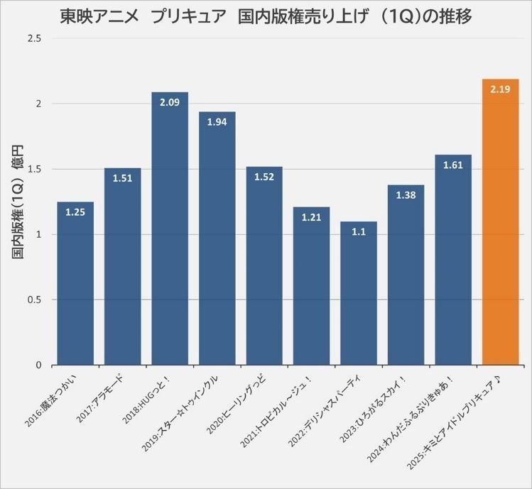 これはコロナ禍以降の落ち込みを完全に回復させただけでなく、1Q(4~6月)のプリキュア国内版権としては「この10年間で最も高い数字」となっています。