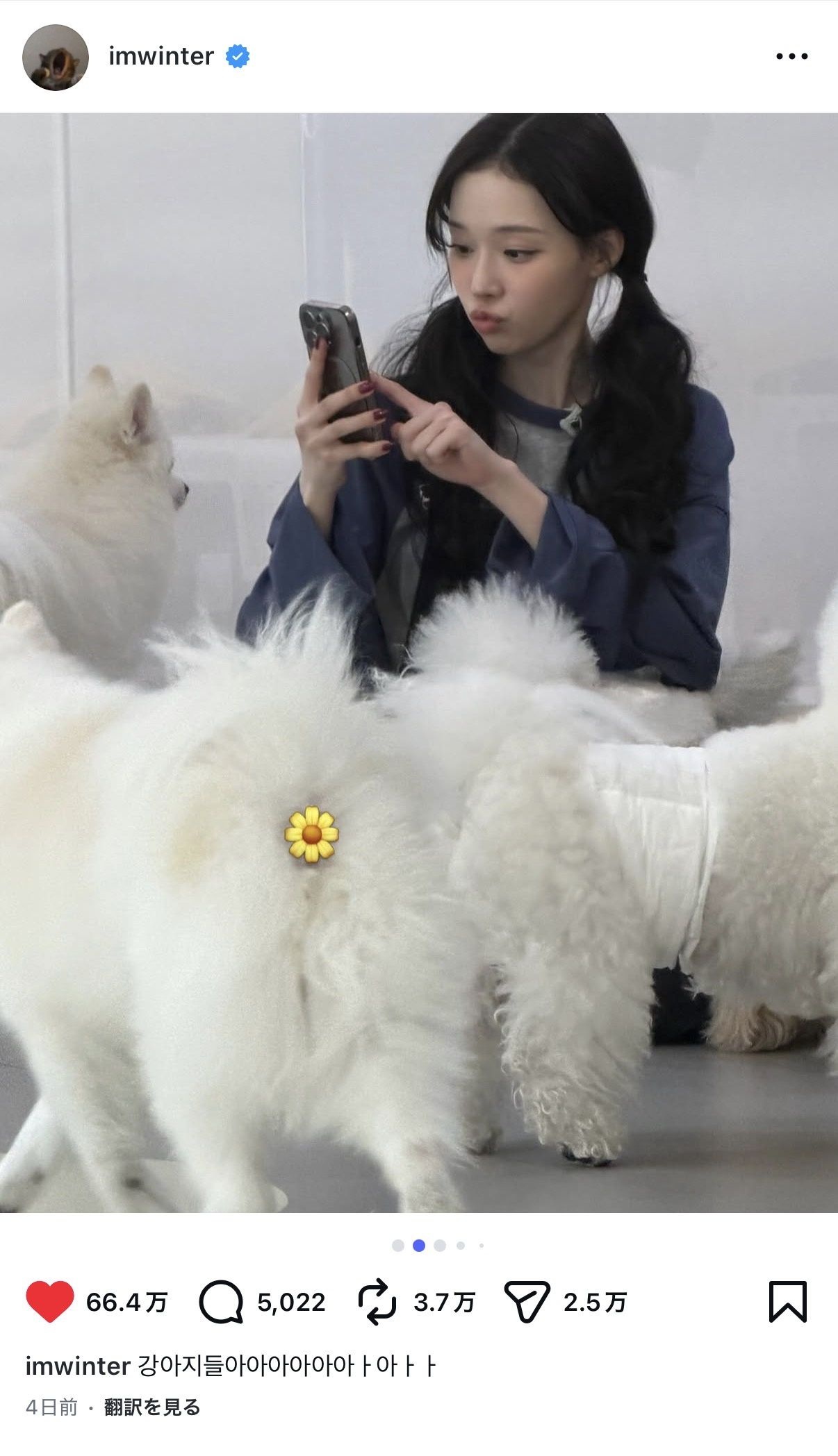 問題の投稿は、24日、人気メンバーWINTER(ウィンター)が来日中、自身のインスタグラムにアップしたもの。