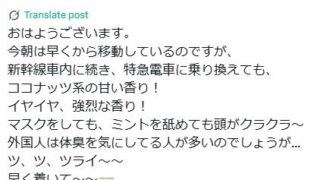 芸スポ 俳優が電車内の外国人の〝香水〟にグッタリ「頭がクラクラ~ツライ、体臭を気にしてる人が多いのでしょうが…」