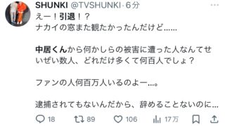 嫌儲 中居さんのファン「中居くんの被害者なんて多くても何百人。ファンの人は数百万人。引退はおかしいべ?」