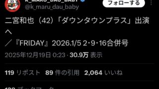 なんG 二宮和也、ダウンタウンプラス出演へ